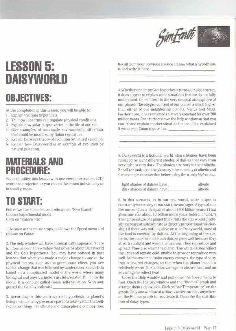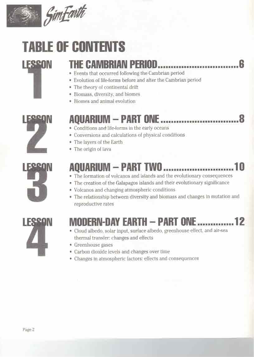 Scans of a teacher's guide that includes SimEarth-based lesson plans. Credit: Guide courtesy of Michael Bremmer