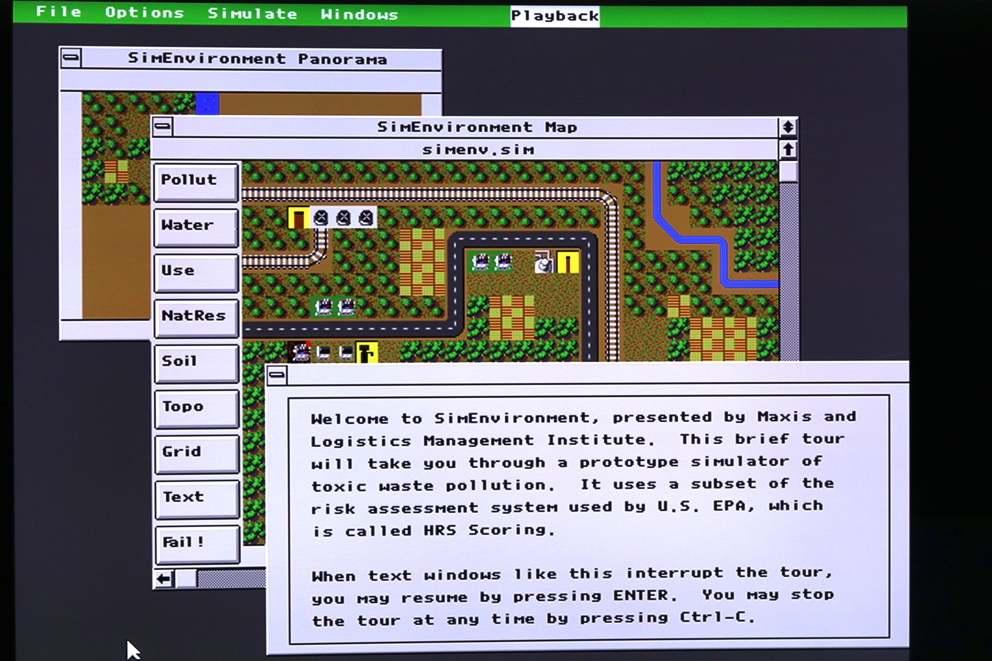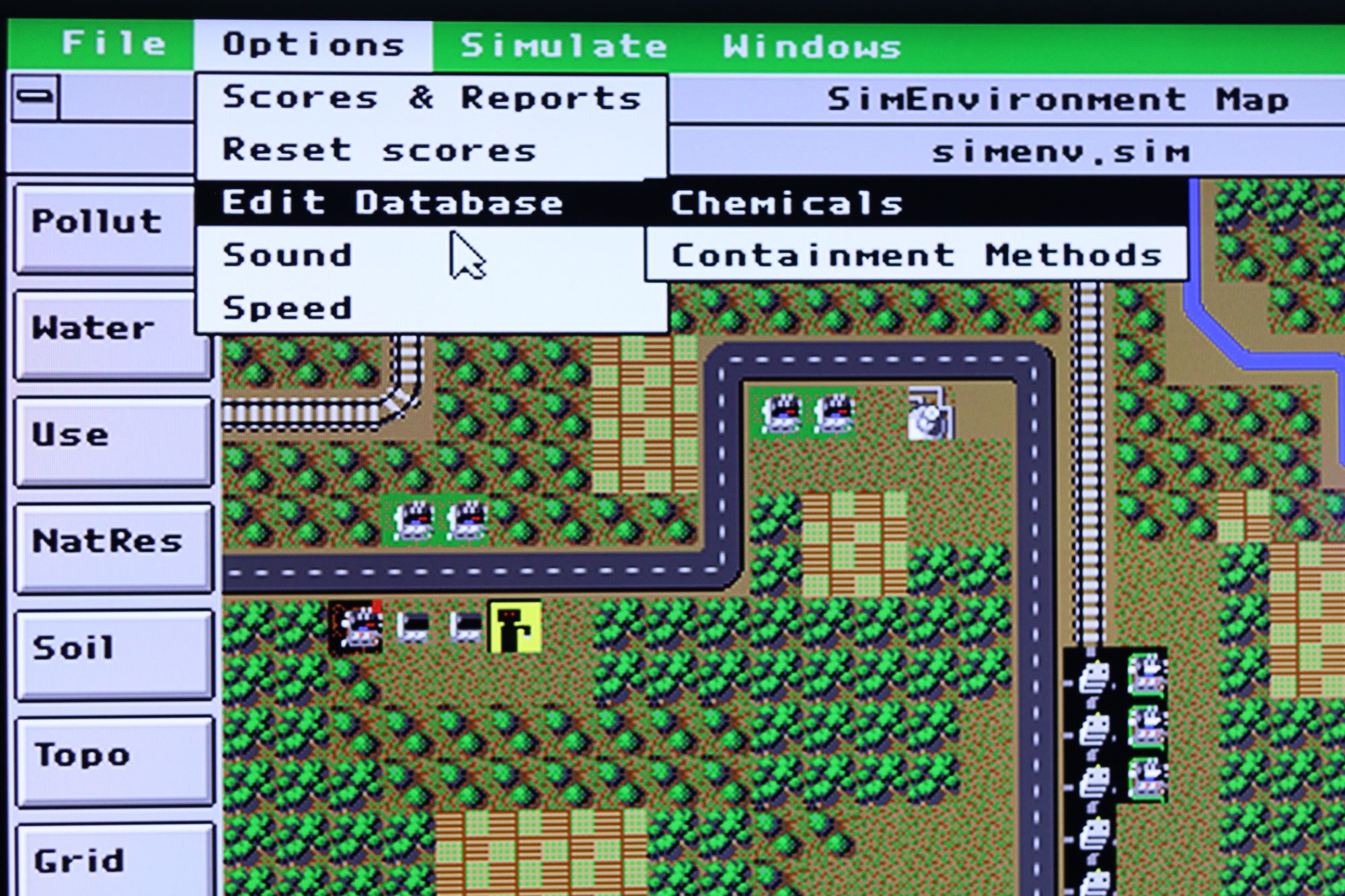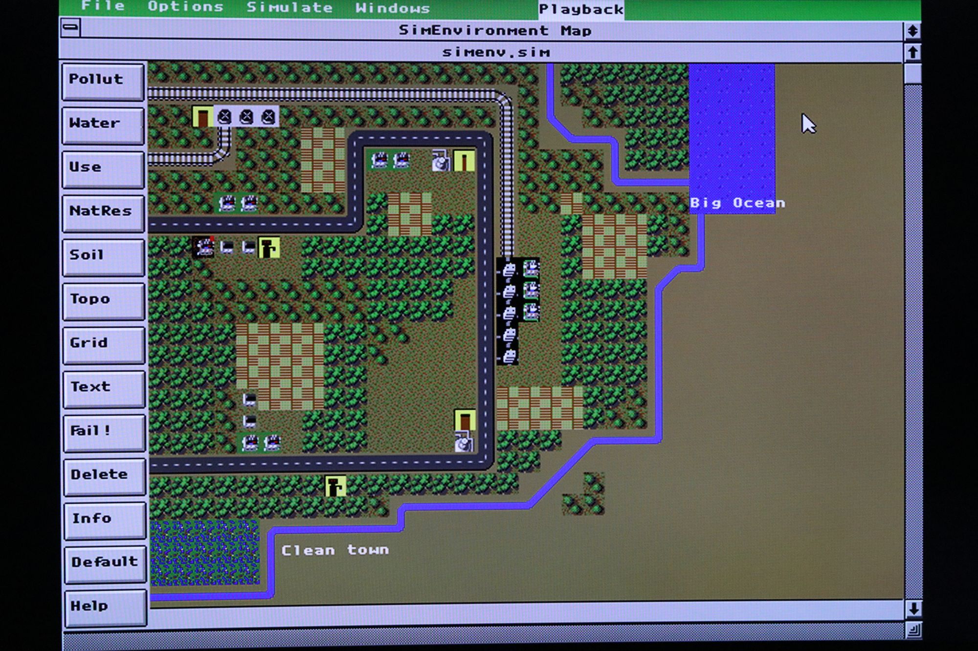 My investigation led to more questions than answers. The copy of SimEnvironment housed at the Strong Museum turned out to be an early prototype consisting of a tutorial, a world map that can be altered SimCity-style by adding roads, rivers, and polluting industrial sites, layers depicting soil conditions and topography, and a bunch of nonfunctional menu options. It's unclear if a more complete version of the game was ever built. Nobody I contacted for this article had more than a fleeting memory of the project or knew what became of it.
