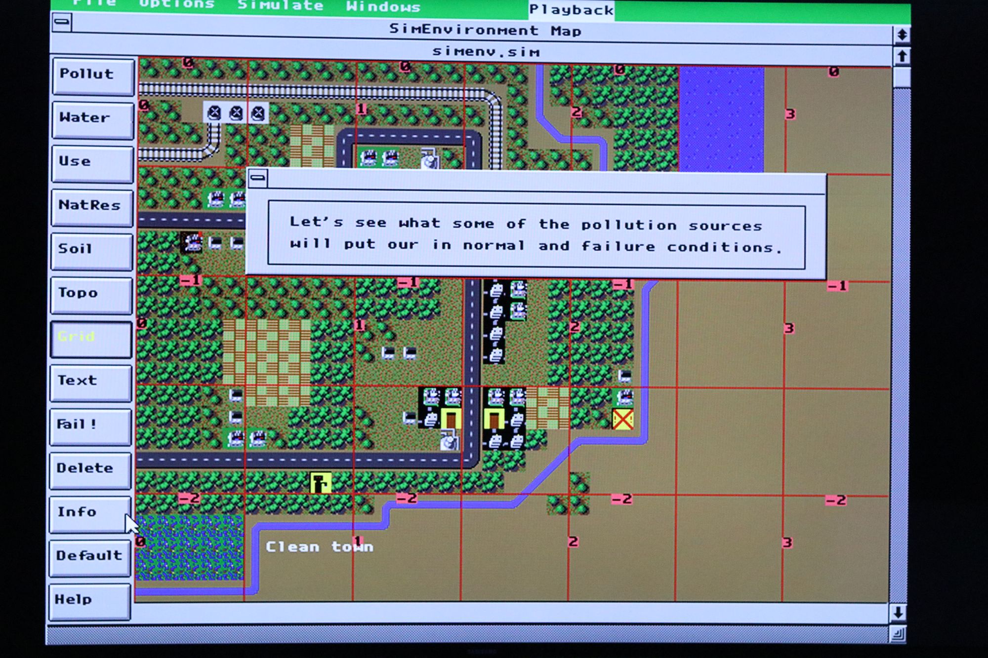 In SimEnvironmnet, toxic sites like landfills or smokestacks can be placed on a gridded, SimCity-style map. Players can alter soil conditions, the depth of the water table and bedrock, and the altitude of the land. They then run simulations to see how quickly and how far pollution spreads through the atmosphere, through groundwater, and across surface water—key contamination "pathways" in the HRS scoring system. Just as HRS scores consider how the land around a toxic site is used, SimEnvironment allows players to reshape the map to include sensitive environments like national recreation areas, as well as different land use types such as urban and rural land, farmland, and forests.